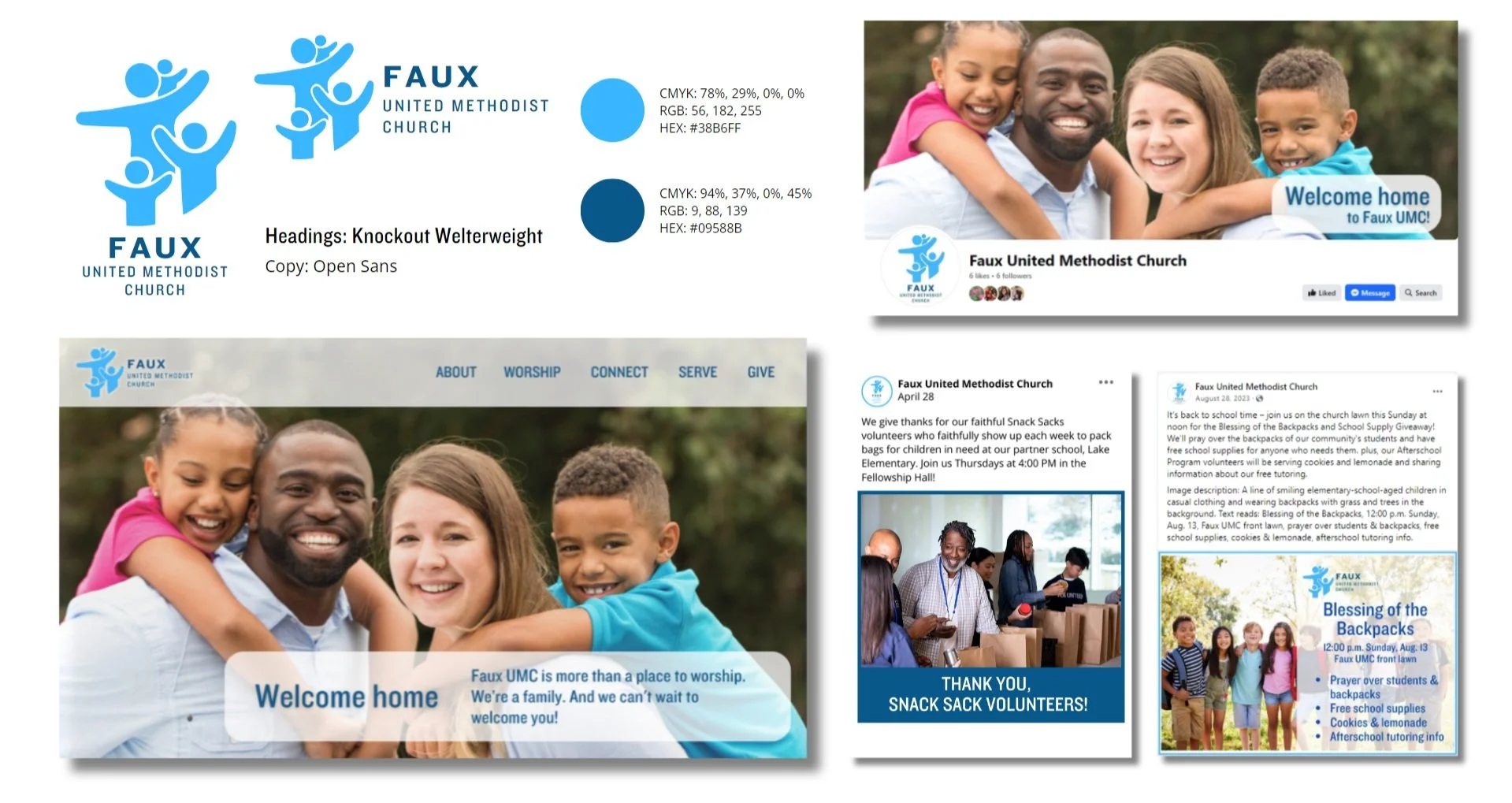 As part of the course “Revitalize Your Church’s Social Media”, I created this branding kit with examples for a fictional church. I used these materials and others to illustrate consistent visuals and voice across digital communications.